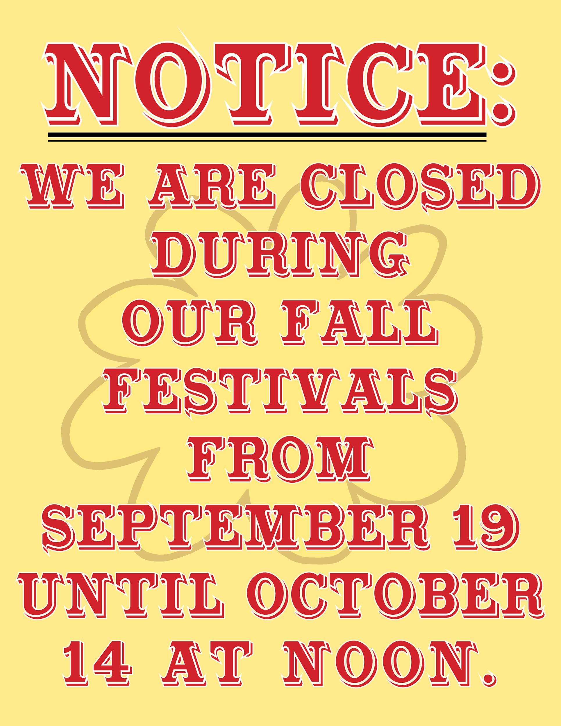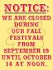 CLOSED DURING OUR FESTIVAL WEEKS